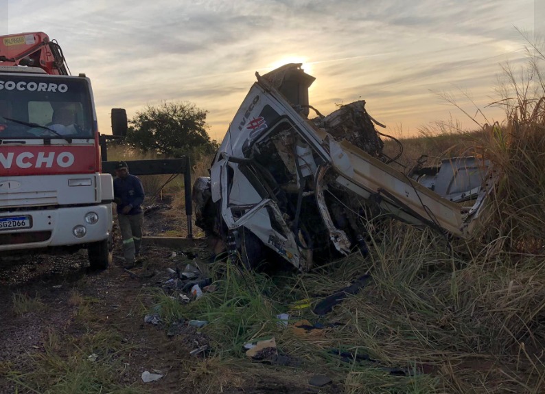 Informações apontam que um caminhão basculante carregado com pedra brita apresentou defeito mecânico. Quando o motorista sinalizava o trânsito, duas carretas-gaiola passaram pelo local, se envolvendo em uma colisão frontal.