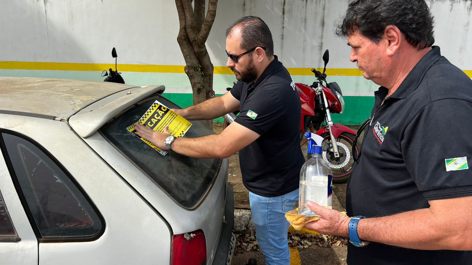 A equipe da fiscalização está colocando adesivo nesses veículos, informando a data da notificação e o prazo de 10 dias para a retirada do local.